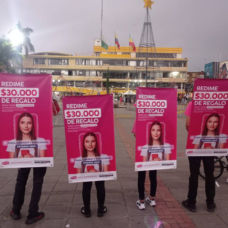 Activación de marca con volanteo en calle, inaguraciones, toma de datos, personal logístico, promotores.